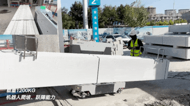针对预制构件的搬运和安装,通用物流机器人能够通过人工操作,实现自动卸货,零接触搬运,零损耗搬运,大大提升了搬运效率、缓解工人身体负担。