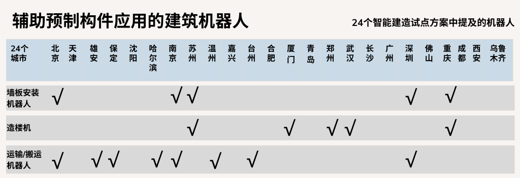 该通知发布后,多个试点城市陆续发布关于推动智能建造与新型建筑工业化协同发展的实施方案,其中建筑机器人的应用是多个城市的实施重点。