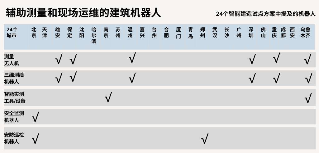 除此之外,在现场的运维、检测上,北京市强调建筑安全监测、安防巡检等环节的创新应用,拓展建筑机器人的应用场景至运维检测